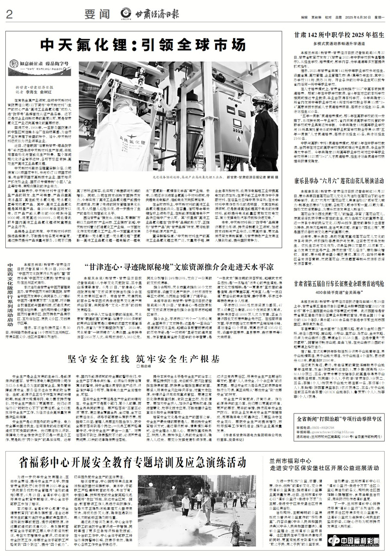 未來,中天新材料將以“隴字號(hào)”品牌建設(shè)要求為引領(lǐng),持續(xù)深耕氟化工領(lǐng)域,加速技術(shù)創(chuàng)新與產(chǎn)業(yè)升級(jí),以更高標(biāo)準(zhǔn)、更優(yōu)品質(zhì)續(xù)寫發(fā)展新篇章,為甘肅特色產(chǎn)業(yè)發(fā)展注入強(qiáng)勁動(dòng)能,提升國際競(jìng)爭(zhēng)力。
